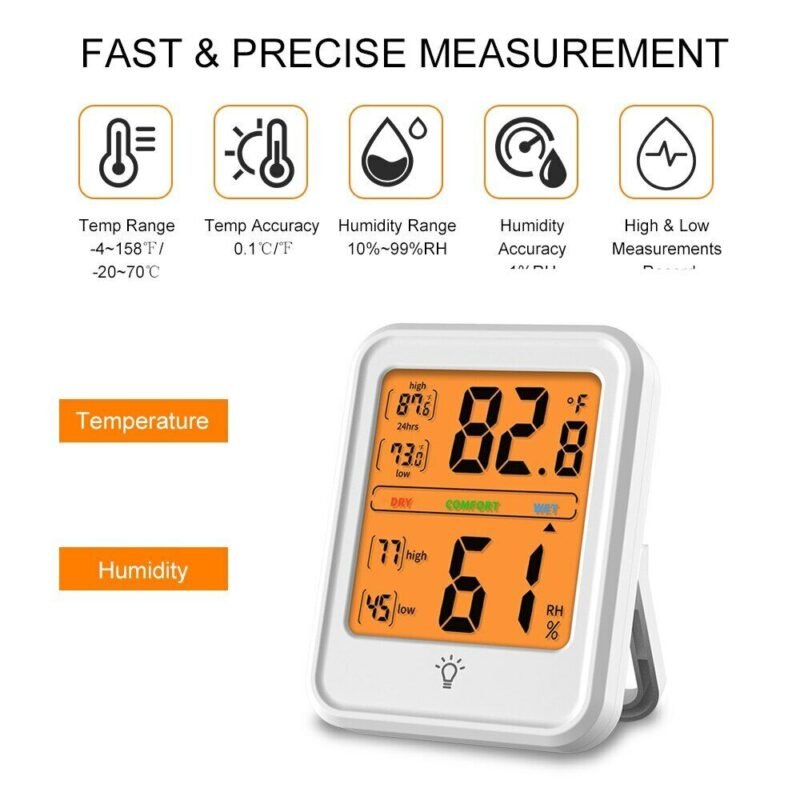 G’day, you awesome Aussie home dwellers! Want to keep tabs on your indoor climate for a healthier living space? Grab a hygrometer thermometer Australia and feel confident maintaining the perfect temperature and humidity at home. This hygrometer thermometer LCD display digital room indoor temperature and humidity is perfect for families, parents, and homeowners aged 15–50 who love affordable, reliable gear—it’s made from durable ABS, measures 85x65x25mm, features a clear LCD with backlight, and tracks -4°F to 158°F (-20°C to 70°C) and 10% to 99% RH with high precision.