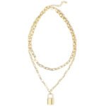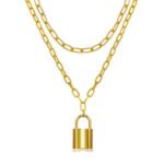• Gold-Plated Alloy: Multi-layered chunky chain, lock pendant, 1 pc.